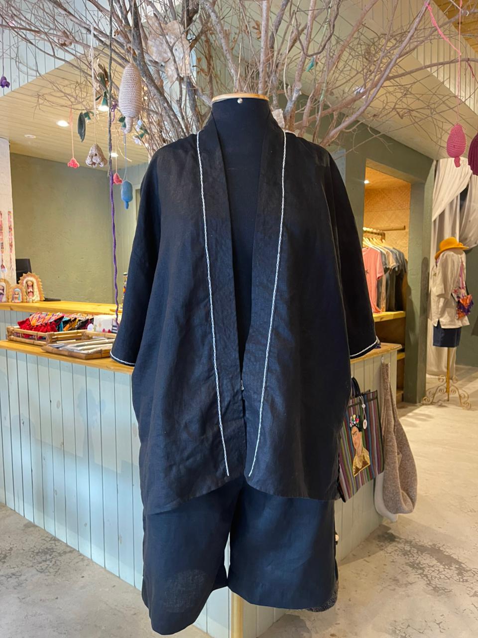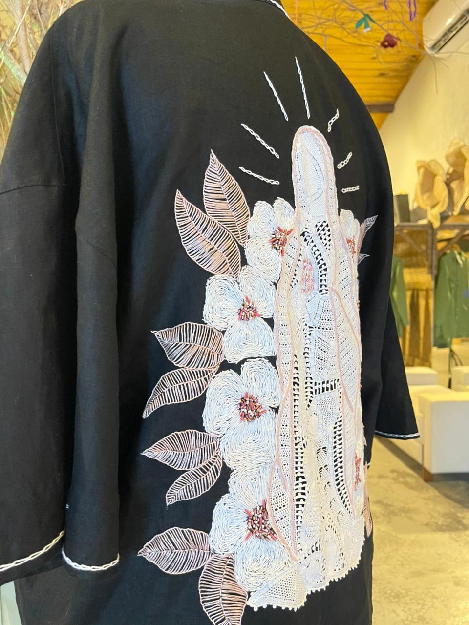 Quimono preto bordado com Nossa Senhora de Guadalupe - tamanho M
